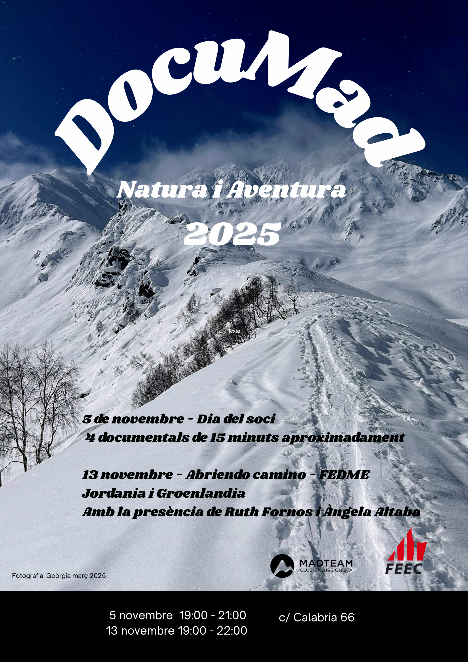 Tal com us vàrem avançar fa uns mesos, la segona edició del Documad Natura i Aventura constarà de dues sessions, el 5 i 13 de novembre.